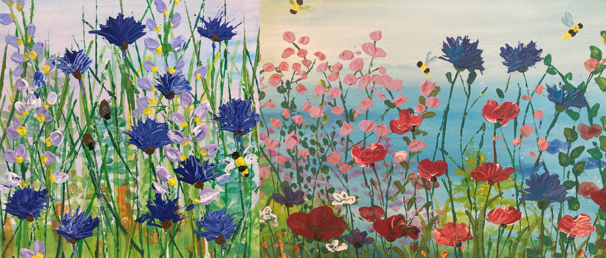 Lust auf Frühling? In diesem Kurs wird eine bunte Blumenwiese auf die Leinwand gezaubert. Gearbeitet wird mit Acrylfarbe und Strukturpaste, damit man die Blumen nicht nur sehen, sondern