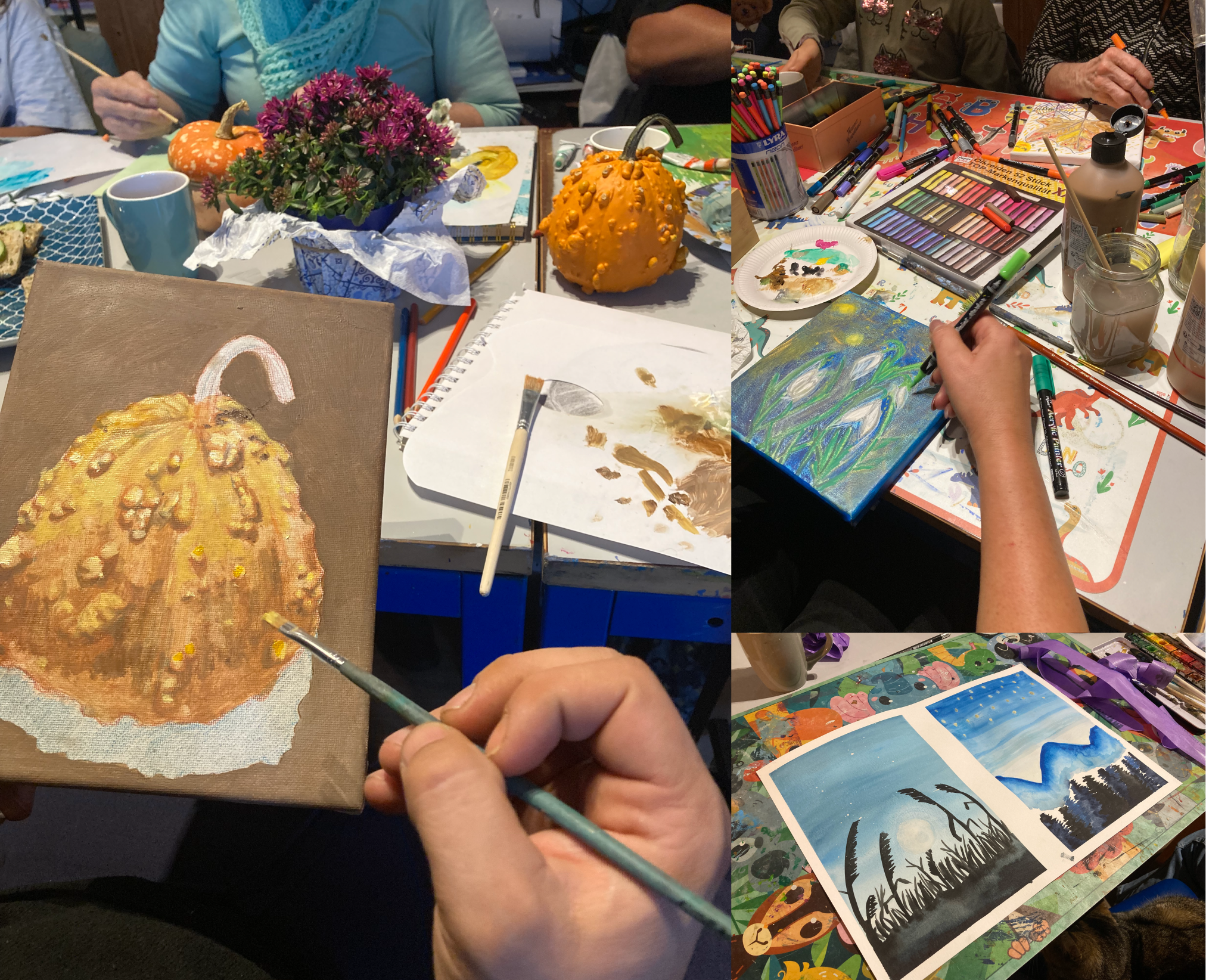 Dieser Kurs eignet sich gut zum Entspannen und vom Alltag abzuschalten. Vorerfahrungen im Malen sind nicht notwendig.