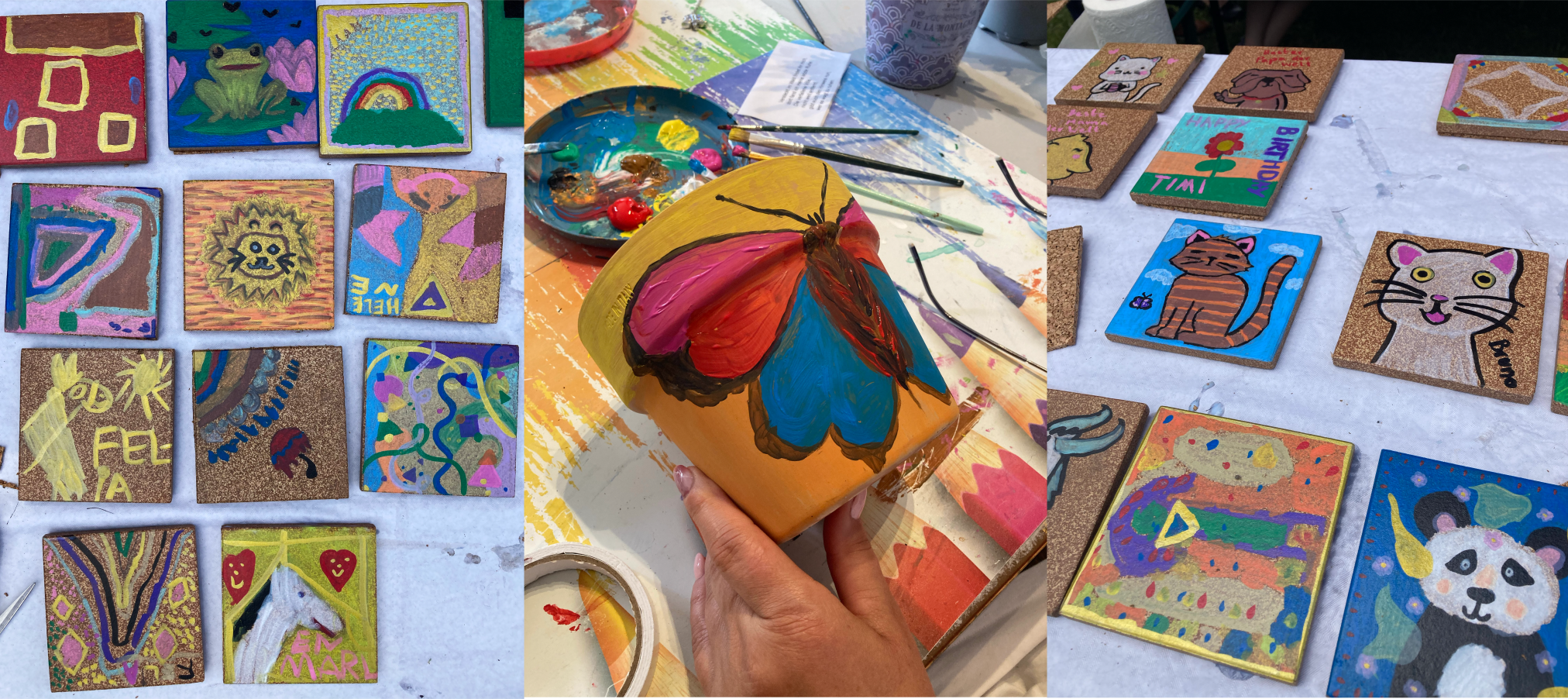In diesem Kurs geht es um kreative Geschenke, die auch noch nützlich sind. So werden aus Fliesen Tassenuntersetzer gemacht und Blumentöpfe bunt bemalt.