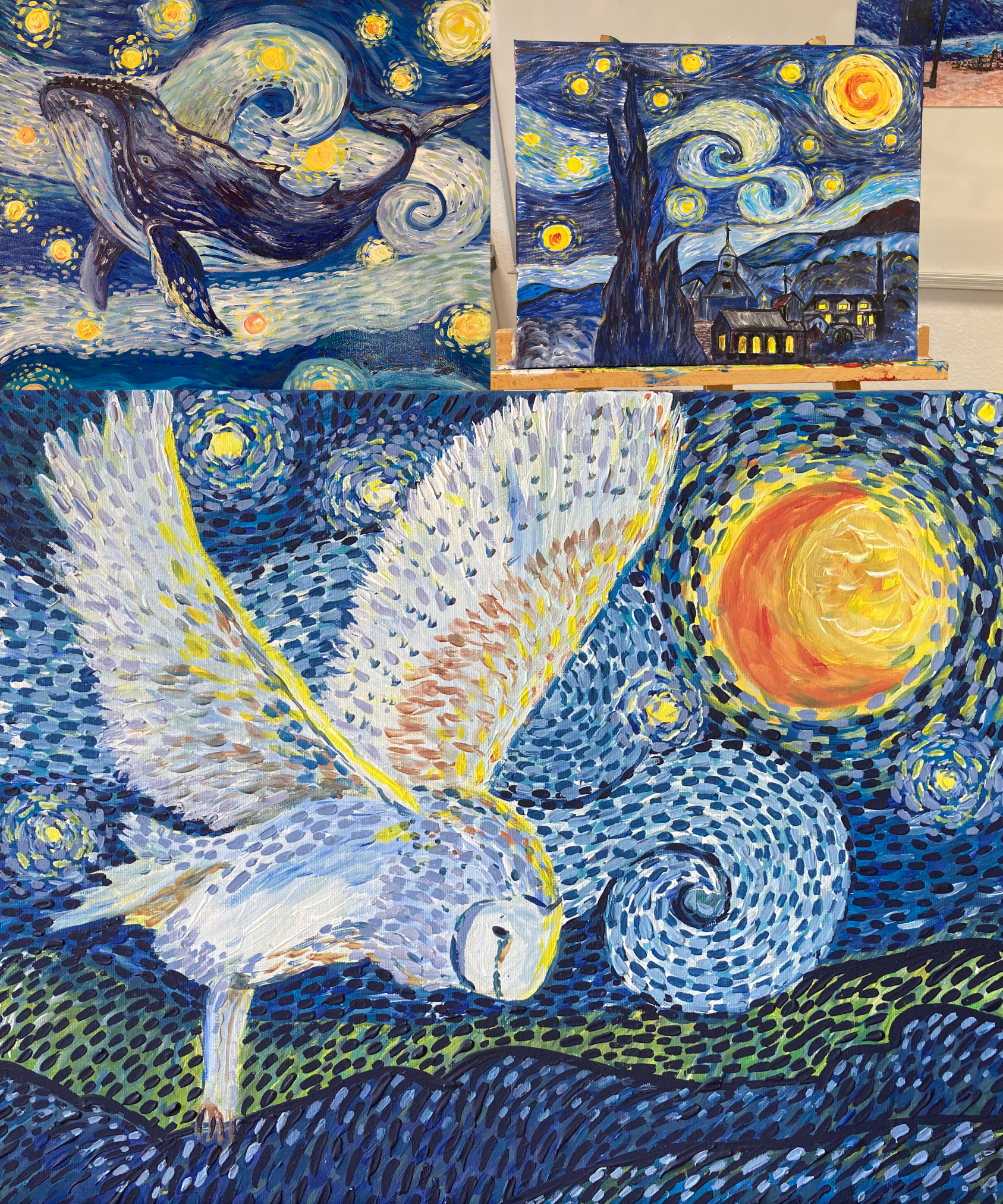 In diesem Kurs wollen wir uns dem Malstil von Vincent annähern. Gemalt wird auf einer Malpappe mit Ölfarben. Der Aufbau vom Motiv wird Schritt für Schritt gezeigt.
