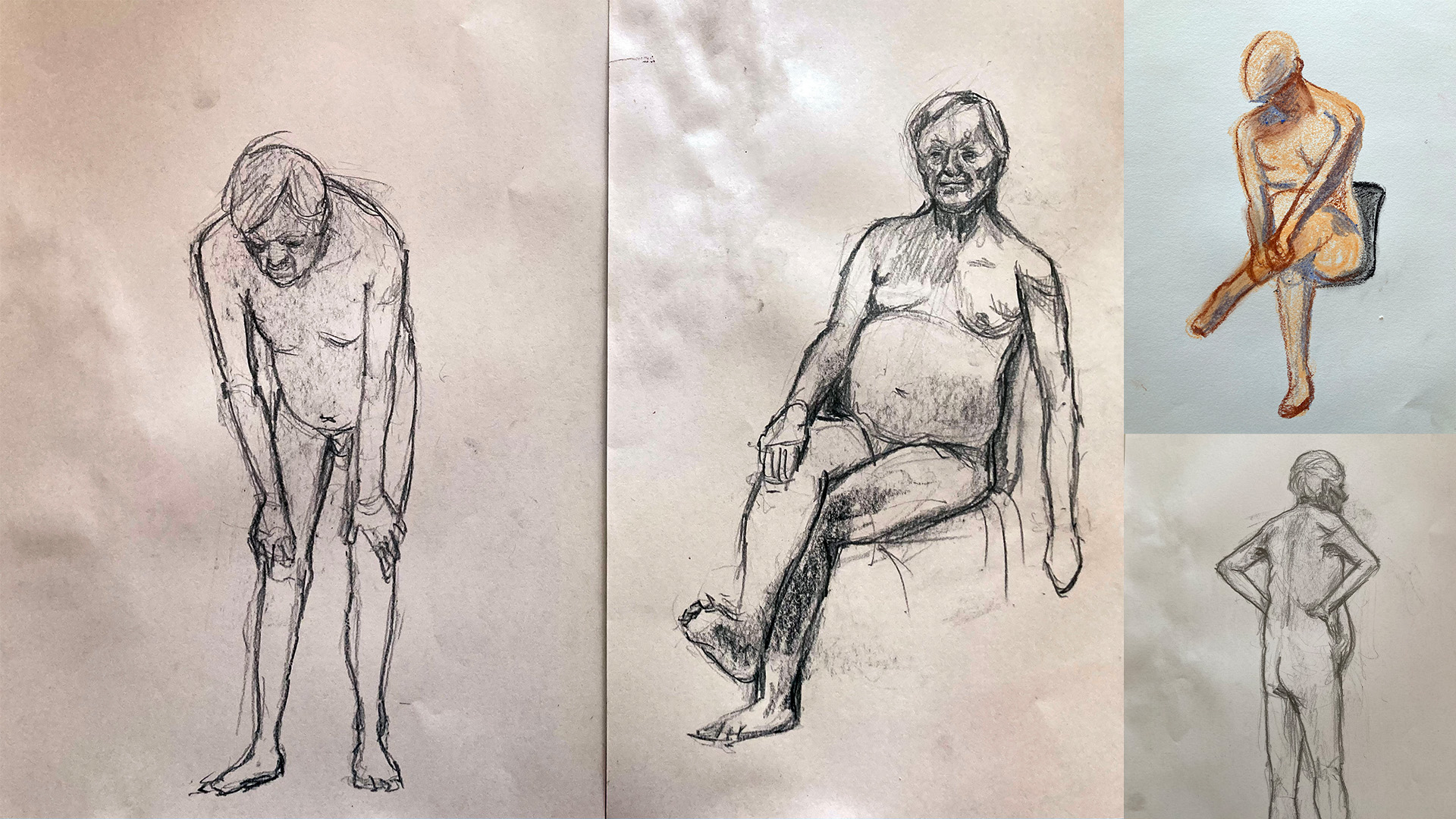 Anschließend stehen jeweils eine Stunde ein männliches und ein weibliches Model Akt. Nach einer kleinen Pause können beide Modelle eine Stunde skizziert werden, bevor es am Ende eine Sichtung der erstellten Werke gibt.